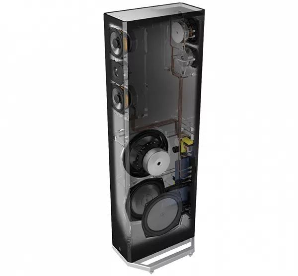 BP9040采用独家的Forward-Focused Bipolar单元数组技术,前面有1颗1吋铝半球高音与2颗4.5吋中低音呈MTM排列,后方还有铝半球高音与4.5吋中低音各一颗,据Definitive Technology表示,此技术可再造优异的音场表现。此外,BP9040的侧边还有1颗8吋低音单元与2颗8吋被辐射低音单元,低音单元已内建的D类扩大机驱动,可产生22Hz低频延伸,表现极为优异。由于低音单元已由内建扩大机模块负责,您的扩大机只需负担高、中音单元数组,此部分的效率为92dB,十分容易驱动。